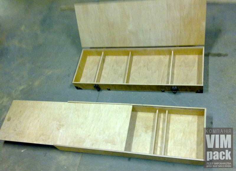 При необхідності пакування не важкої продукції можливий варіант виконання ящиків безпосередньо тільки з фанери, при цьому ящики закріплюються спеціальними цвяхами-штифтами, що дозволяє цій тарі бути одночасно міцною і легкою.